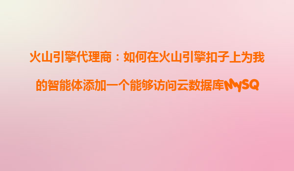 2025-10-26火山引擎代理商指南:为智能体集成云数据库MySQL版工具 火山引擎扣子平台的核心优势 作为字节跳动旗下的云服务平台,火山引擎凭借其高可靠性、弹性扩展和一站式解决方案,成为企业智能化转型的首选。...