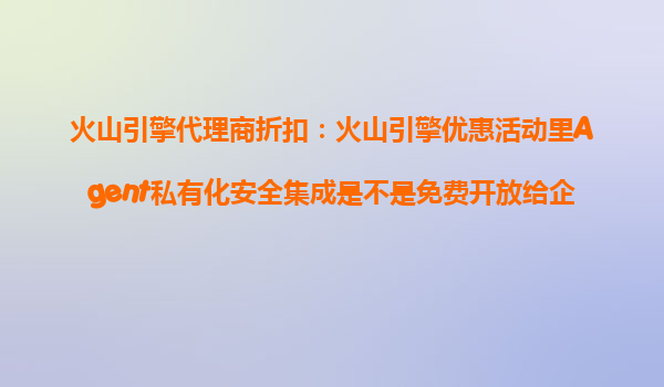 2025-10-26火山引擎代理商折扣政策解析:Agent私有化安全集成是否免费开放? 一、火山引擎优惠活动核心解读 近期火山引擎推出的企业优惠活动中,"Agent私有化安全集成"功...