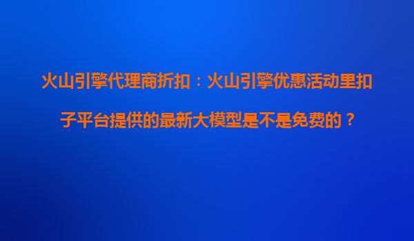 2025-10-26火山引擎代理商折扣:火山引擎优惠活动中扣子平台提供的最新大模型是否免费? 火山引擎代理商折扣与扣子平台大模型服务 火山引擎作为字节跳动旗下的云计算服务...