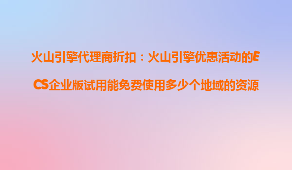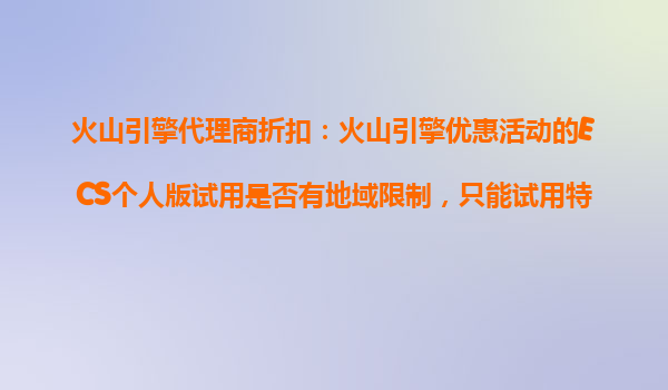 火山引擎代理商折扣:解析ECS个人版试用地域限制与火山云生态优势 一、火山引擎ECS个人版试用地域限制解析 许多用户在选择火山引擎云服务器ECS个人版试用时,常关注地域是否受限。根据官方政策,试用账号通常...