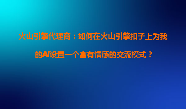 2025-10-26火山引擎代理商:如何在火山引擎扣子上为我的AI设置一个富有情感的交流模式? 引言 在当今高度竞争的AI市场中,情感化交流已成为提升用户体验的关键。企业若想让AI应用脱颖而出,不仅需...