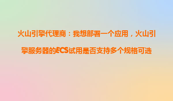 2025-10-26火山引擎ECS试用:灵活规格选择与云计算优势解析 一、火山引擎ECS试用支持多规格可选 作为火山引擎代理商,我们了解到许多用户在试用阶段希望根据业务需求灵活选择服务...