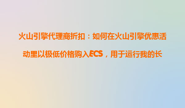 2025-10-25火山引擎代理商折扣:如何以极低成本购入ECS运行长期应用? 一、为什么选择火山引擎ECS? 火山引擎作为字节跳动旗下的云计算服务品牌,其弹性计算服务(ECS)以高性能、高稳定性著称,特别适合长期运...