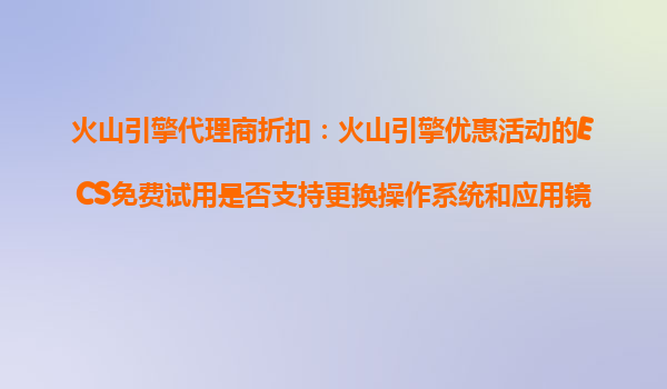 2025-10-25火山引擎代理商折扣:火山引擎优惠活动的ECS免费试用是否支持更换操作系统和应用镜像? 一、火山引擎ECS免费试用的核心优势 火山引擎是字节跳动旗下的云计算服...
