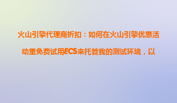 2025-10-24火山引擎代理商折扣:如何免费试用ECS托管测试环境以节省初期投入? 一、火山引擎ECS免费试用的价值 在项目开发初期,测试环境的搭建往往需要投入大量硬件资源和时间成本。火山引...