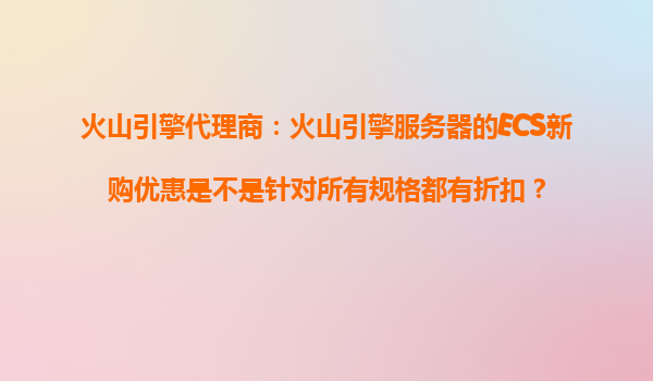 2025-10-24火山引擎代理商:火山引擎服务器的ECS新购优惠解读与优势分析 一、火山引擎ECS新购优惠的覆盖范围 许多用户在选择火山引擎服务器时,首先会关注其新购优惠政策的具体适用条件。关于“ECS新购优惠是否覆...