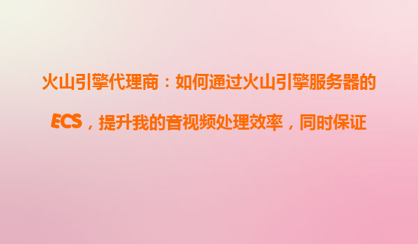 2025-10-24火山引擎代理商:如何通过火山引擎服务器的ECS,提升音视频处理效率,同时保证算力稳定? 一、火山引擎ECS的核心优势 作为字节跳动旗下的云计算服务平台,火山引擎推出了一系列高性能产...