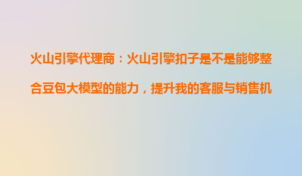 2025-10-24火山引擎扣子:整合豆包大模型能力,打造高效客服与销售机器人 在数字化时代,企业对于高效、智能的客服与销售机器人需求日益增长。火山引擎扣子作为火山引擎代理商推荐的高效工具,能够整合豆包大模型的能力,帮助...