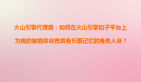 2025-10-24火山引擎代理商指南:打造具有长期记忆的智能体角色人设 在AI技术快速发展的今天,为智能体设置具有长期记忆的角色人设已成为提升用户体验的关键。火山引擎扣子平台凭借其强大的技术能力和灵活的配置选项,为代...