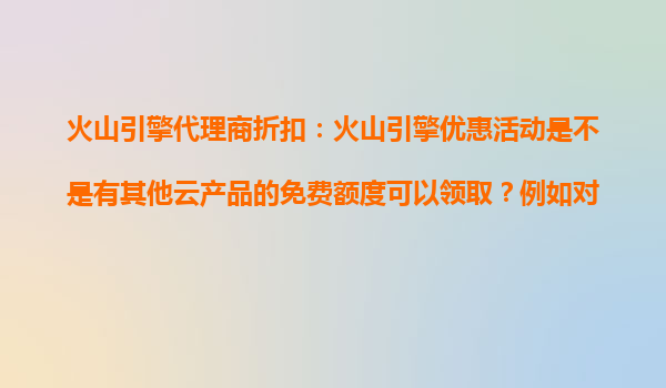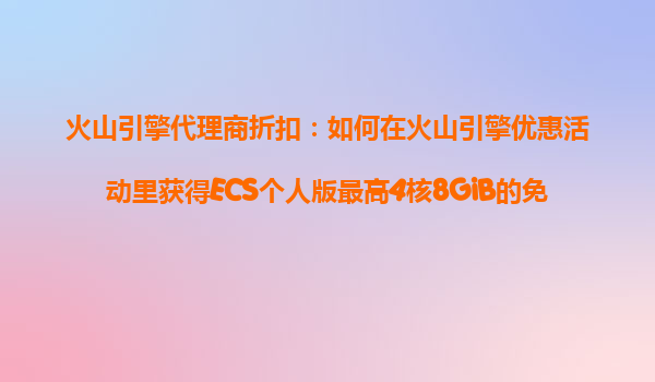 2025-10-23火山引擎代理商折扣:如何在火山引擎优惠活动里获得ECS个人版最高4核8GiB的免费试用规格? 一、火山引擎ECS免费试用的背景与优势 火山引擎作为字节跳动旗下的云计算品牌,近年来在云计算市场迅速...