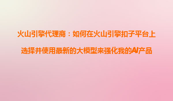 2025-10-23火山引擎代理商指南:如何在火山引擎扣子平台上选择并使用最新大模型强化AI产品 一、火山引擎的核心优势 作为字节跳动旗下的云计算服务平台,火山引擎凭借以下优势成为AI...