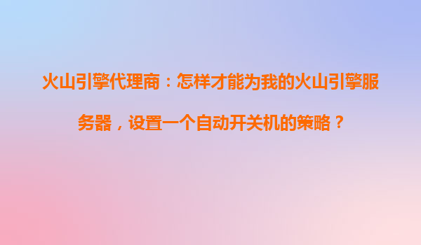 2025-10-23火山引擎代理商:如何为服务器配置自动开关机策略? 一、火山引擎的智能化运维优势 作为字节跳动旗下的云服务平台,火山引擎提供高性能弹性计算资源与智能化运维工具。其核心优势包括: 秒级...