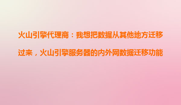 2025-10-23火山引擎代理商指南:如何高效完成数据迁移至火山引擎服务器? 一、火山引擎数据迁移的核心优势 作为字节跳动旗下的云计算服务品牌,火山引擎提供业界领先的数据迁移解决方案,其核心优势体现在:...