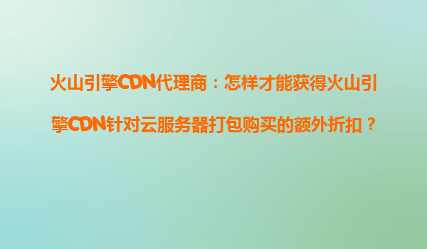 2025-10-21火山引擎CDN代理商:如何获得火山引擎CDN针对云服务器打包购买的额外折扣? 一、火山引擎CDN与云服务器打包购买的价值 在数字化转型的浪潮中,企业对于高效、稳定的网络加速需求日益增长。火山引擎CDN凭借其...