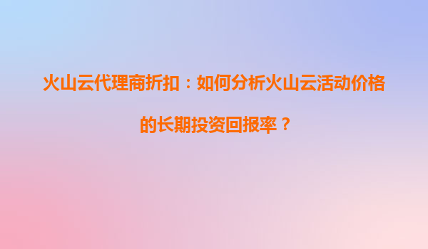 2025-10-21火山云代理商折扣:长期投资回报率分析指南 一、理解火山云的核心优势 火山云作为领先的云计算服务提供商,其技术架构和资源规模具备显著竞争力。首先,其全球分布式数据中心网络...