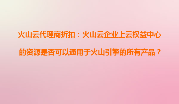2025-10-21火山云代理商折扣:火山云企业上云权益中心的资源通用于火山引擎的所有产品吗? 一、火山云企业上云权益中心的核心资源 火山云作为字节跳动旗下企业级云计算服务品牌,其“企业上云权益中心”旨在为企...