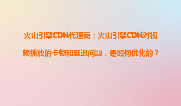 2025-10-21火山引擎CDN如何优化视频播放的卡顿与延迟问题? 引言:视频体验的挑战与需求 在数字化时代,视频已成为用户获取信息与娱乐的核心载体,但卡顿、延迟等问题直接...