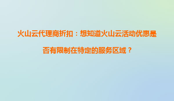 火山云代理商折扣:活动优惠是否受服务区域限制? 一、火山云的服务区域覆盖 火山云作为国内领先的云计算服务提供商,其基础设施覆盖全球多个区域,包括中国大...