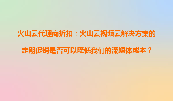 火山云代理商折扣:火山云视频云解决方案的促销如何降低流媒体成本? 一、引言:流媒体时代的高成本挑战 随着短视频、直播、在线教育等行业的爆发式增长,企业对流媒体服务的需求激增。然而,视频...
