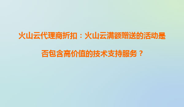 2025-10-20火山云代理商折扣解析:高价值技术支持是否包含在满额赠送中? 在数字化转型浪潮下,企业上云已成为不可逆的趋势。作为国内领先的云计算服务商,火山云凭借其强大的技术实力和丰富的产品矩阵,正在为越来越多的企业...