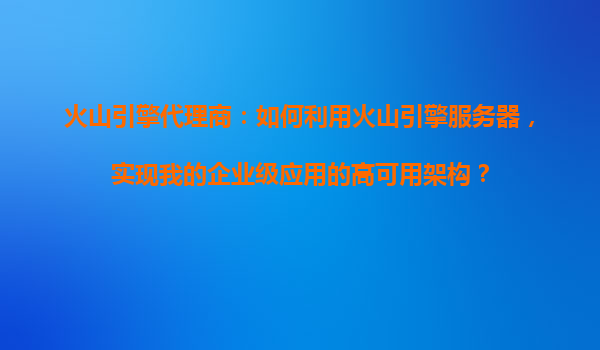 火山引擎代理商:如何利用火山引擎服务器,实现企业级应用的高可用架构? 引言 在数字化转型的时代背景下,企业级应用的高可用性(HighAvailability,HA)已成为业务连续性和用户体...