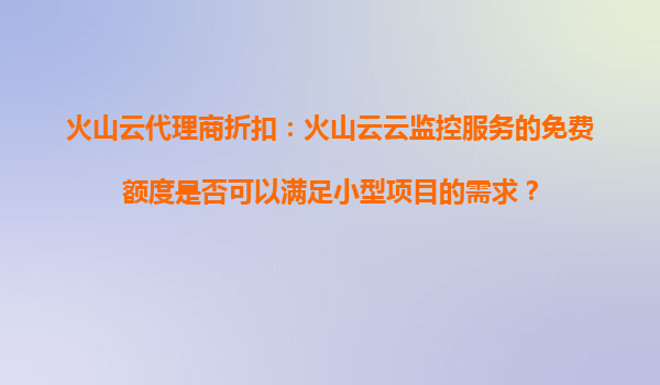 2025-10-19火山云代理商折扣:火山云云监控服务的免费额度能否满足小型项目需求? 一、火山云云监控服务的免费额度解析 火山云作为字节跳动旗下的云计算服务品牌,其云监控服务(C...