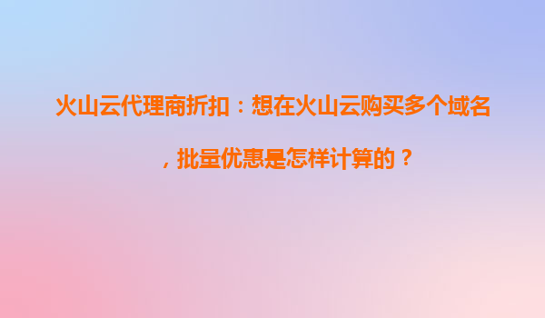 2025-10-19火山云代理商折扣:批量购买域名的优惠计算方式解析 一、火山云代理商折扣的优势 火山云作为国内领先的云计算服务提供商,其在域名注册、云服务器、CDN加速等领域均有突出表现。其中,域名注册服务凭借高性...