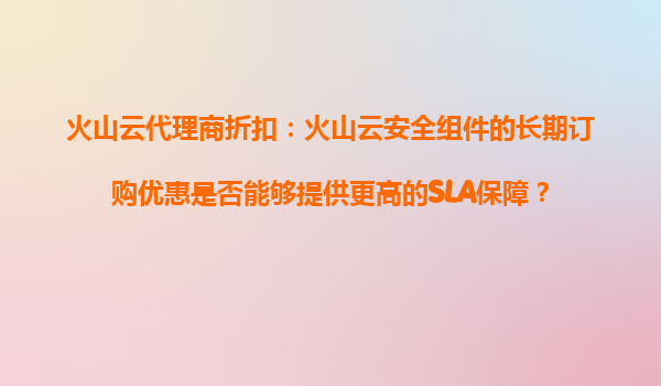 火山云代理商折扣:火山云安全组件的长期订购优惠能否提供更高SLA保障? 在数字化转型加速的今天,企业对于云服务的依赖程度越来越高,尤其是云安全组件,成为企业保护数据和业务连续性的重要屏障。作为国内领...