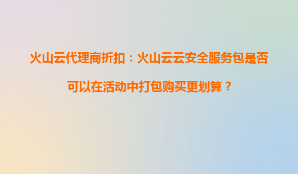2025-10-19火山云代理商折扣:火山云云安全服务包是否可以在活动中打包购买更划算? 一、火山云的优势解析 作为国内领先的云服务提供商,火山云凭借其强大的技术实力和丰...