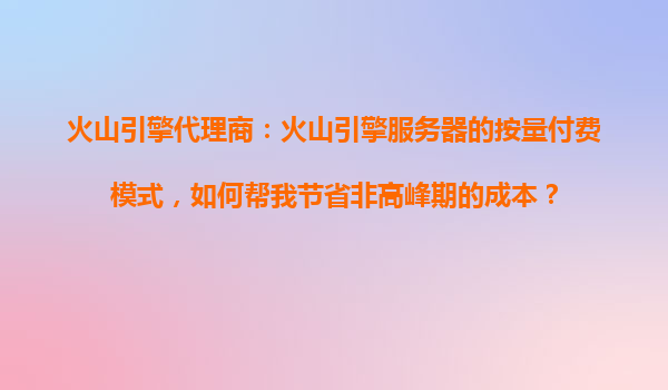 2025-10-19火山引擎代理商解析:如何通过按量付费模式在非高峰期节省成本? 一、火山引擎按量付费模式的核心优势 火山引擎作为字节跳动旗下的云计算服务品牌,其按量付费(Pay-as-you-go)模式允许用户根据实际资源...