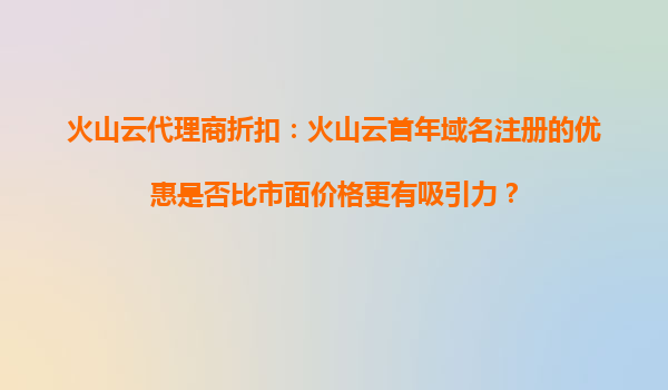 2025-10-19火山云代理商折扣:火山云首年域名注册的优惠是否比市面价格更有吸引力? 一、火山云首年域名注册优惠的核心优势 火山云作为云计算服务提供商,其域名注册服务...