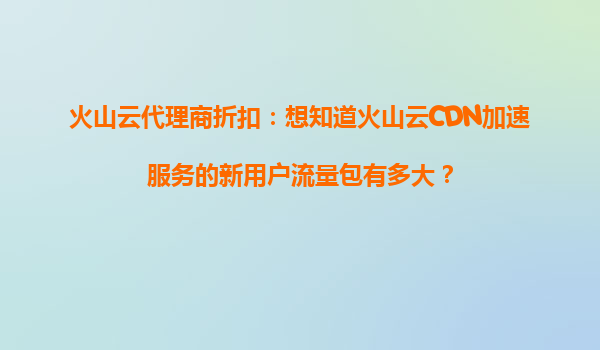 火山云代理商折扣:新用户流量包详解与CDN加速服务优势 一、火山云CDN加速服务的新用户流量包容量 火山云为新用户提供极具吸引力的流量包优惠,帮助用户低成本体验高性能CDN加速服务。目前,新用户注册...