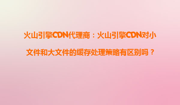 火山引擎CDN代理商详解:火山引擎CDN对小文件与大文件的缓存处理策略 一、引言 在当今数字化时代,内容分发网络(CDN)已成为提升用户体验、优化网站性能的关键技术。作为字节跳动旗下的云服务品牌,火山引擎CDN凭...