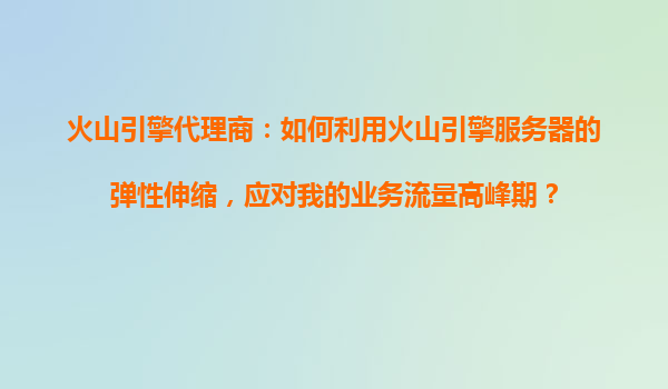 2025-10-18火山引擎代理商:如何利用火山引擎服务器的弹性伸缩,应对业务流量高峰期? 一、业务流量高峰期的挑战 在数字化时代,企业业务往往面临突发流量高峰的挑战,例如电商大促、热点事件、节假日活动等场景。传统固...