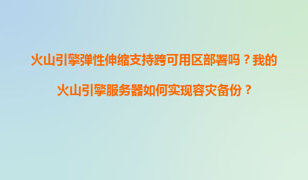 2025-11-16火山引擎弹性伸缩与容灾备份:跨可用区部署与自动化容灾方案 一、火山引擎弹性伸缩的跨可用区部署能力 火山引擎作为字节跳动推出的云计算服务平台,其弹性伸缩服务(AutoScaling)支持跨可用区(AvailabilityZon...