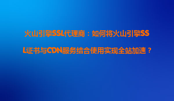 2025-10-16火山引擎SSL代理商:如何将火山引擎SSL证书与CDN服务结合使用实现全站加速? 一、引言 在当今数字化时代,网站的安全性和访问速度是影响用户体验的关键因素。SSL证书能够保障数据传...