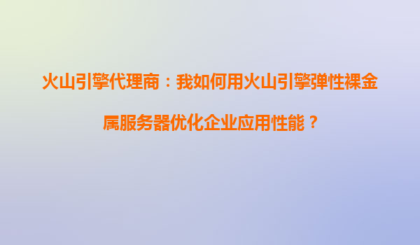 2025-10-16火山引擎代理商:我如何用火山引擎弹性裸金属服务器优化企业应用性能? 引言:数字化转型中的性能挑战 在当今快速发展的数字时代,企业应用性能直接关系到用户体验和业务效率。然而,传统的虚拟化服务器...