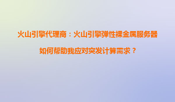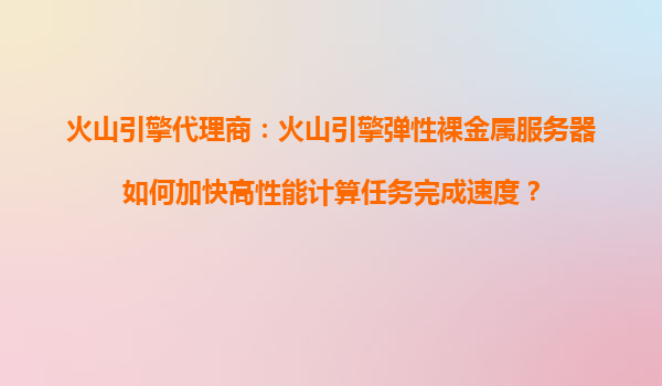 火山引擎代理商:火山引擎弹性裸金属服务器如何加快高性能计算任务完成速度? 一、高性能计算任务的挑战与需求 高性能计算(HPC)任务通常涉及大规模数据处理、...