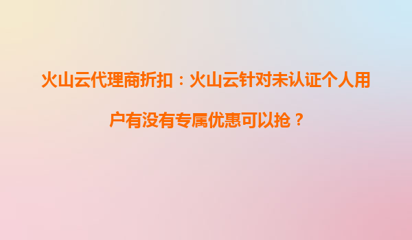 2025-10-16火山云代理商折扣揭秘:未认证个人用户专属优惠及核心优势解析 一、火山云未认证个人用户能否享受专属优惠? 针对标题中的核心问题"火山云针对未认证个人用户有没有专属优惠",答案是肯定的。火山...