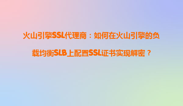 2025-10-16火山引擎SSL代理商:如何在火山引擎的负载均衡SLB上配置SSL证书实现解密? 引言 随着互联网安全的重要性日益凸显,SSL证书已成为保障数据传输安全和提升用户信任度的关键工具。火...