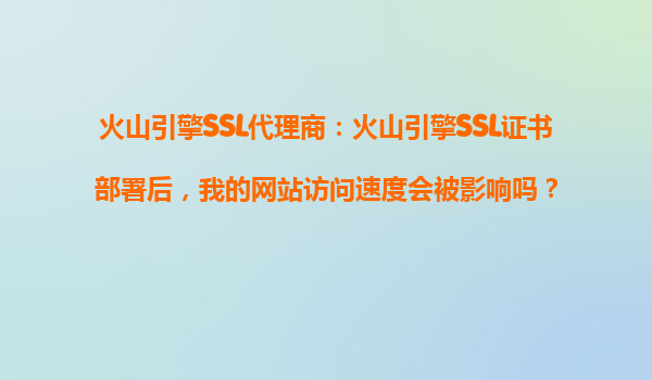 火山引擎SSL代理商:火山引擎SSL证书部署后,我的网站访问速度会被影响吗? 一、SSL证书对网站访问速度的影响 在部署SSL证书后,许多人会担心网站的访问速度是否会受到影响。实际上,SSL证书的部署确实会对网站的访...