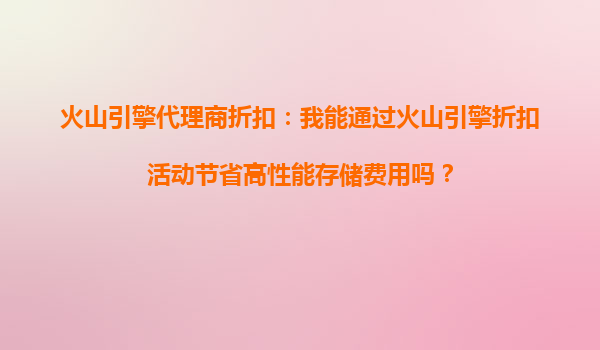 2025-10-16火山引擎代理商折扣:我能通过火山引擎折扣活动节省高性能存储费用吗? 随着企业数字化转型的加速,云计算服务成为越来越多企业的首选。火山引擎作为字节跳动推出的云服务平台,凭借其高性能...