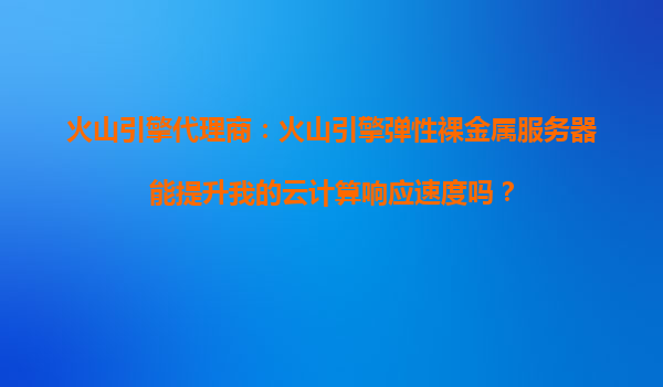 2025-10-16火山引擎代理商:火山引擎弹性裸金属服务器能提升我的云计算响应速度吗? 一、弹性裸金属服务器的定义与优势 火山引擎的弹性裸金属服务器(ElasticBareMetalServer)是一种融合了物理机性能和云服务弹...