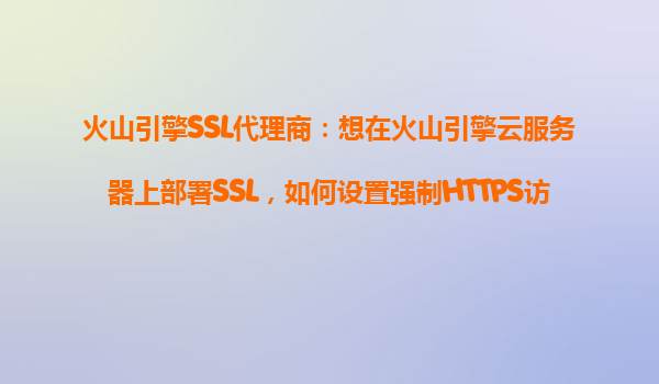 2025-10-16火山引擎SSL代理商指南:如何在火山引擎云服务器上设置强制HTTPS访问 一、为什么要强制HTTPS访问? 随着网络安全问题日益受到重视,HTTPS已成为网站标配。HTTPS通过SSL/TLS协议加密传输数据,能有效防止信息被窃取...