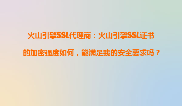 2025-10-16火山引擎SSL代理商:火山引擎SSL证书的加密强度如何,能满足我的安全要求吗? 引言:SSL证书的重要性 在当今数字化时代,网络安全已成为企业和个人不可忽视的重要议题。SSL证书作为保障...