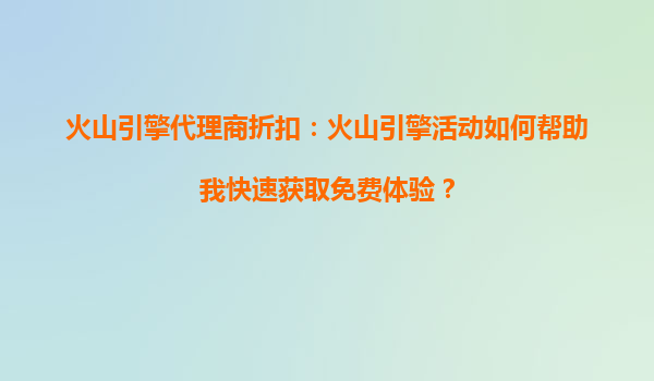 2025-10-15火山引擎代理商折扣:火山引擎活动如何帮助我快速获取免费体验? 一、火山引擎及其代理商折扣的优势 火山引擎是字节跳动旗下的云计算服务平台,依托字节跳动强大的技术积累和全球化资源,为用户提...