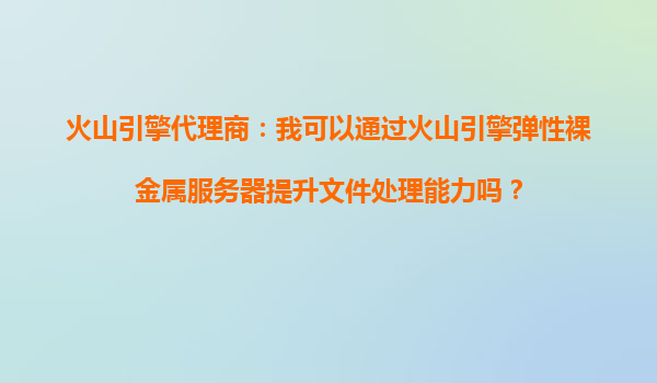 2025-10-14火山引擎代理商指南:如何通过弹性裸金属服务器提升文件处理能力? 一、火山引擎弹性裸金属服务器的核心优势 火山引擎作为字节跳动旗下的云服务平台,其弹性裸金属服务器(EBM)融合了传统物理机的高性能与...
