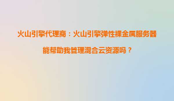 火山引擎代理商:火山引擎弹性裸金属服务器如何助力企业高效管理混合云资源 一、混合云管理的挑战与火山引擎的解决方案 随着企业数字化转型的深入,混合云架构已成为主流选择。然而,混合云环境的管理却面...