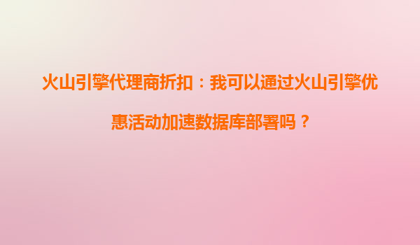 2025-10-14火山引擎代理商折扣:如何通过优惠活动加速数据库部署? 一、火山引擎的云数据库优势解析 火山引擎作为字节跳动旗下的云计算服务品牌,其云数据库产品凭借高性能、高可用和弹性扩展能力,成为企业数字化...