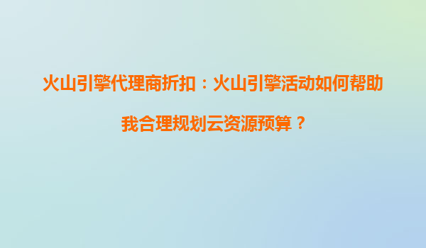 2025-10-13火山引擎代理商折扣:助力企业精准规划云资源预算 一、灵活资源计费模式降低初期成本 火山引擎提供按量付费、包年包月、预留实例券等多种计费方式,结合代理商专属折扣,用户可根据业务峰...